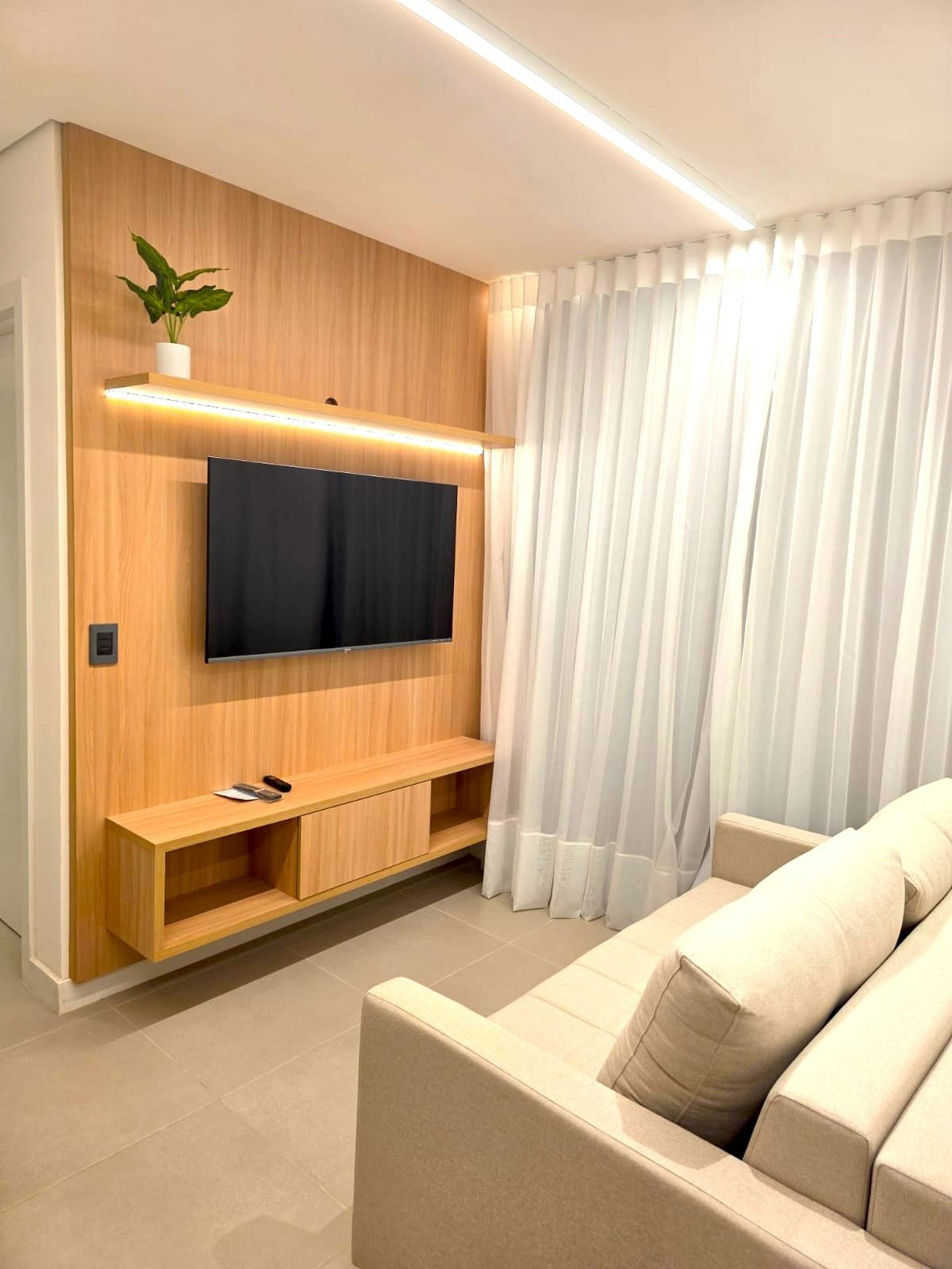 Este apartamento moderno de 58 m² no MOOV Smart Home foi projetado para oferecer conforto, praticidade e bem-estar em um só espaço. Design inteligente e ambientes integrados, ideal para famílias, grupos pequenos ou estadias mais longas em Cuiabá.