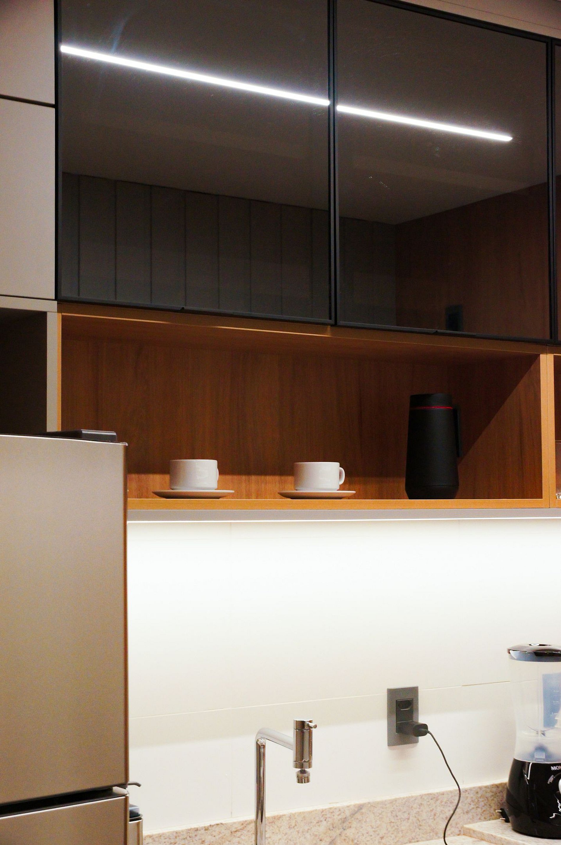 A sala integrada possui Smart TV, ar-condicionado e iluminação planejada, garantindo bem-estar em qualquer momento do dia. O banheiro é moderno, com box de vidro, acabamento sofisticado e ducha relaxante.