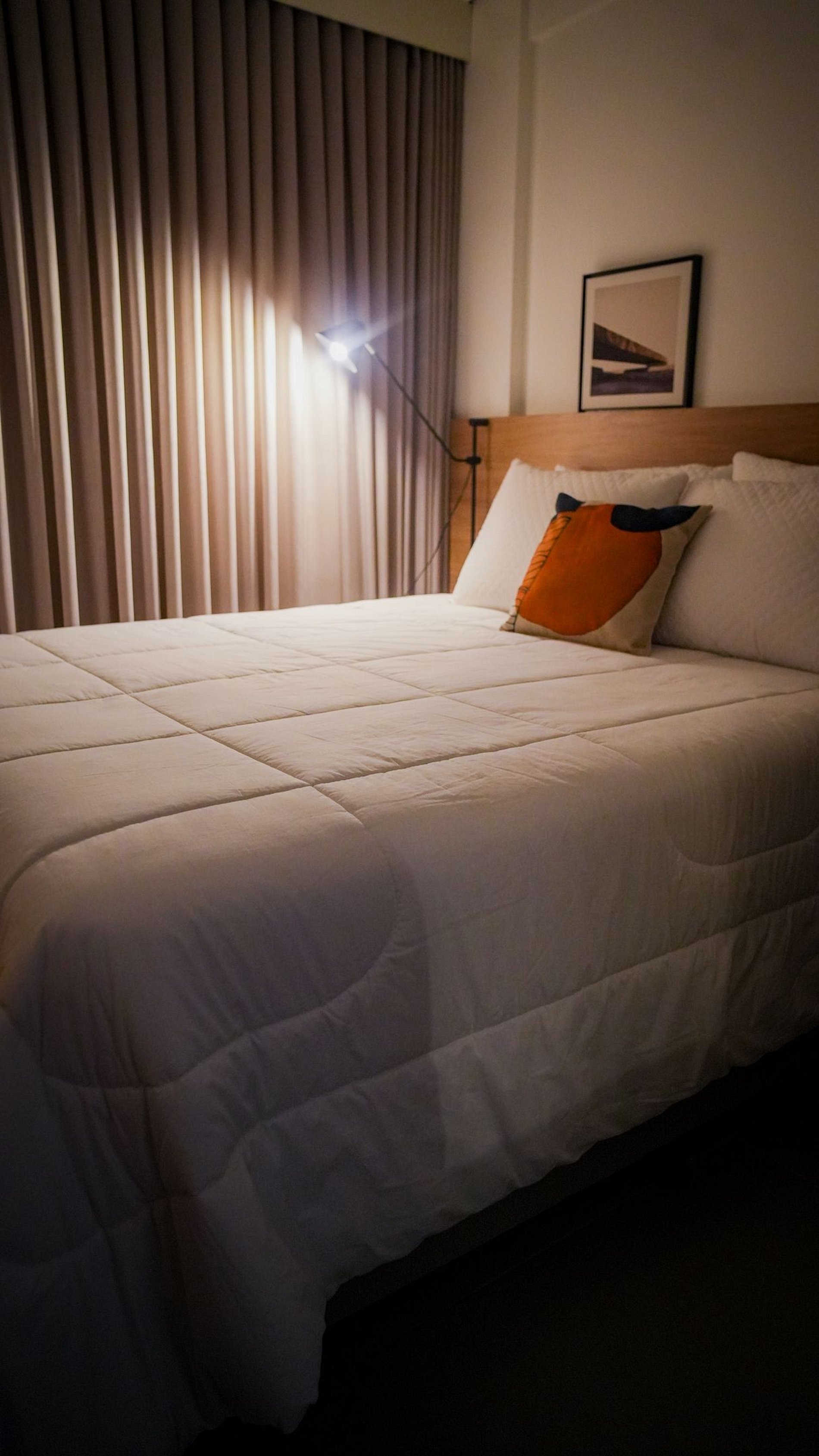 A sacada privativa mobiliada é um espaço perfeito para relaxar e apreciar a vista da cidade. Todos os ambientes possuem ar-condicionado e decoração contemporânea que privilegia o conforto.