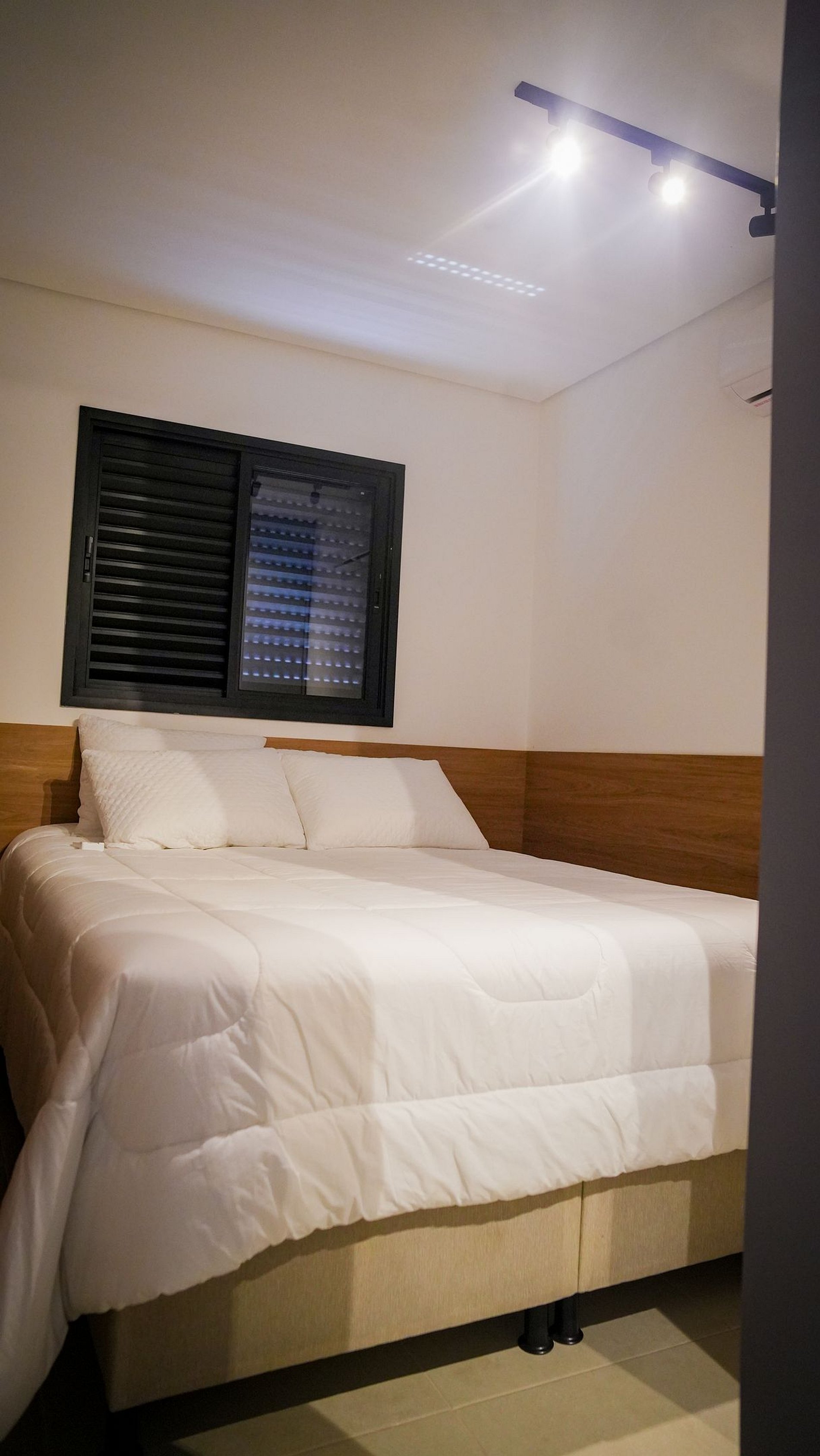 - 1 suíte com cama queen, ar-condicionado e guarda-roupa espelhado