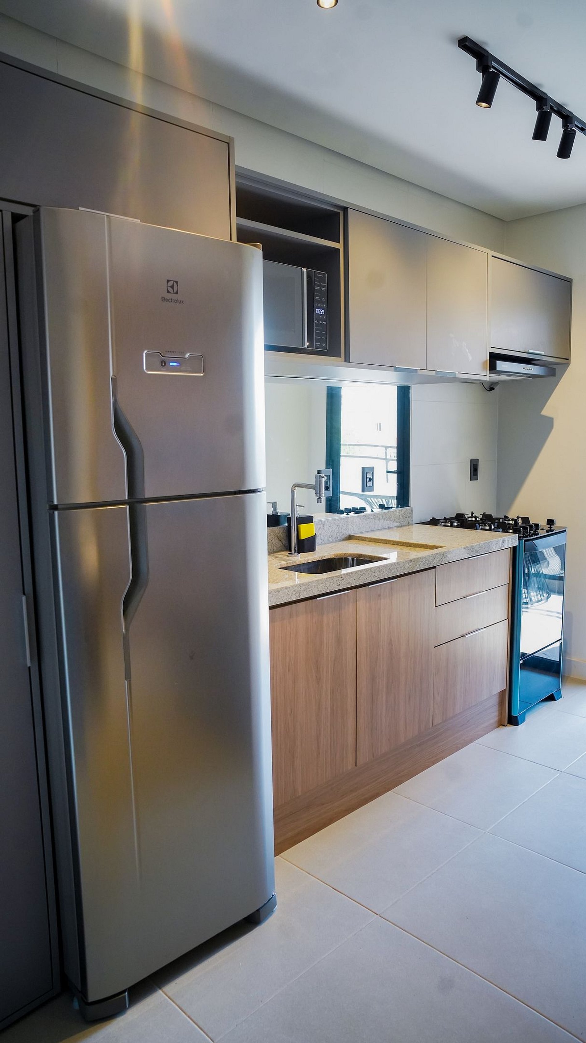 - Cozinha equipada (geladeira duplex, micro-ondas, fogão 4 bocas, cafeteira elétrica, pia em granito e utensílios básicos)